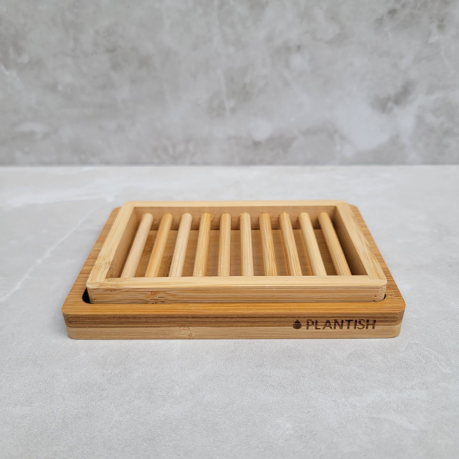 The first layer is comprised of bamboo rods that suspend your soap well above any sitting water. The detachable, lower layer is ideal for keeping your counter clean by catching excess water and drips which can easily be drained or cleaned.