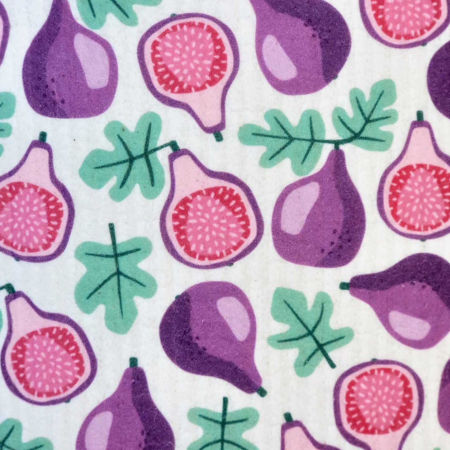 Ultra absorbent, compostable Swedish dishcloth in fruity Fig design.
