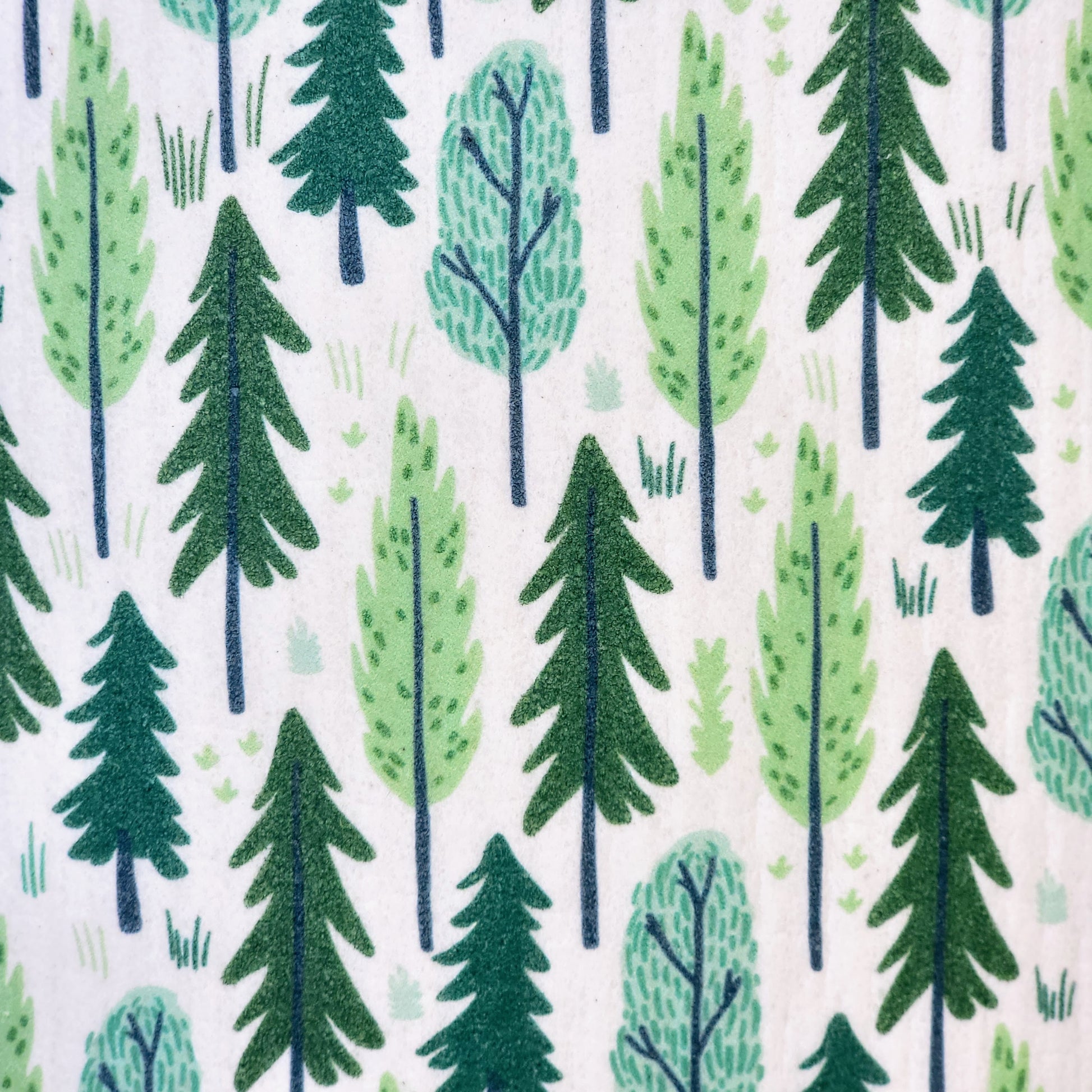 Ultra absorbent, compostable Swedish dishcloth in floral green Forest design.