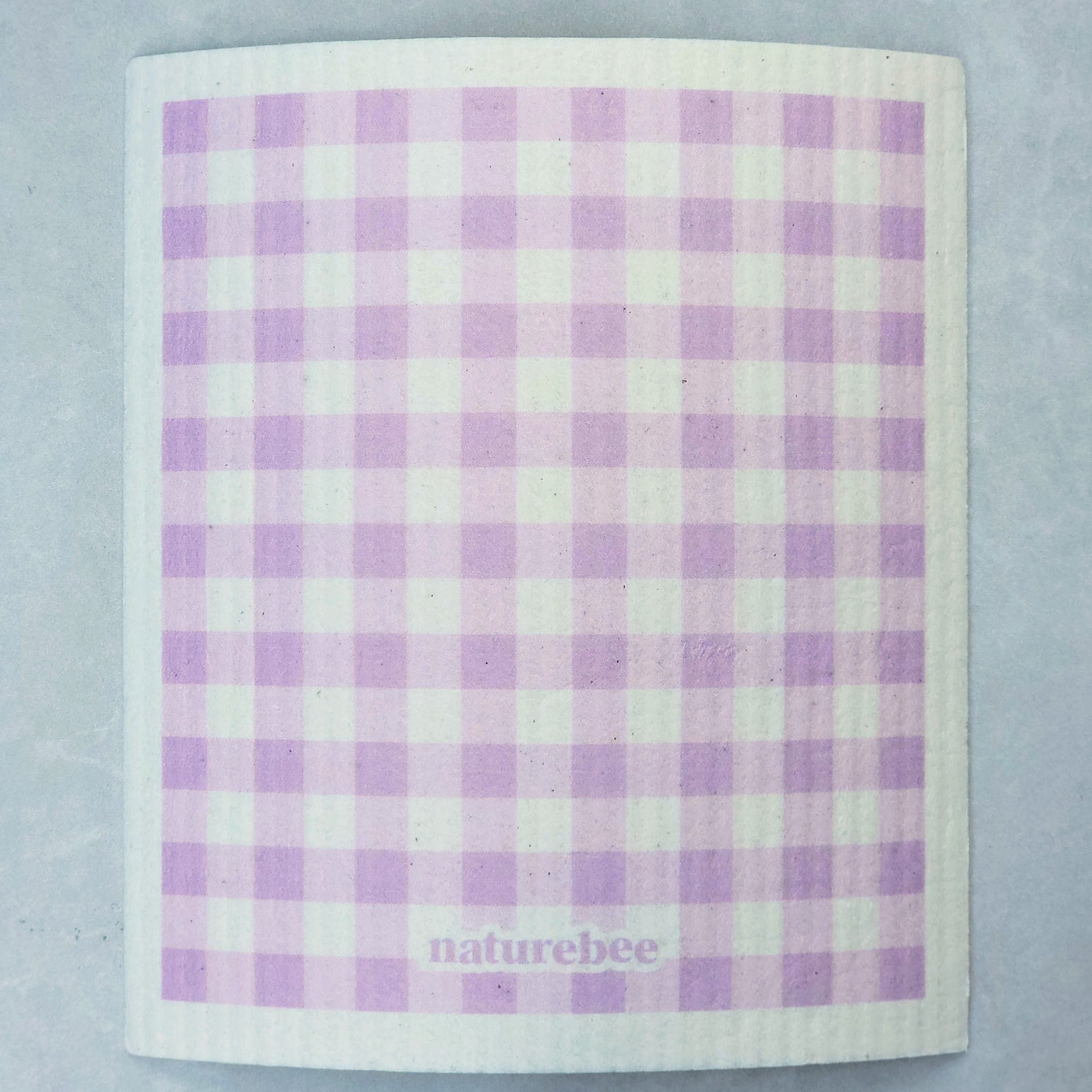 Ultra absorbent, compostable Swedish dishcloth in floral Purple Gingham design.